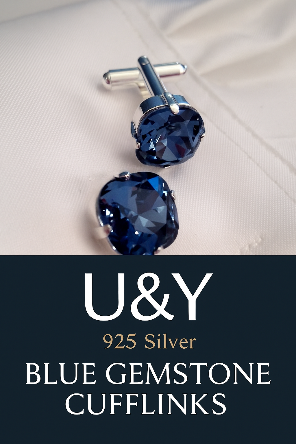 925 Sterling Silver Men’s Cufflinks – Royal Blue American Diamond Cufflinks | U&Y Premium Collection